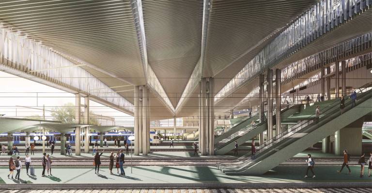 Nadhod bo umeščen med obstoječo železniško postajo, novo avtobusno postajo in nakupovalno središče, ki prav tako nastaja ob njej.