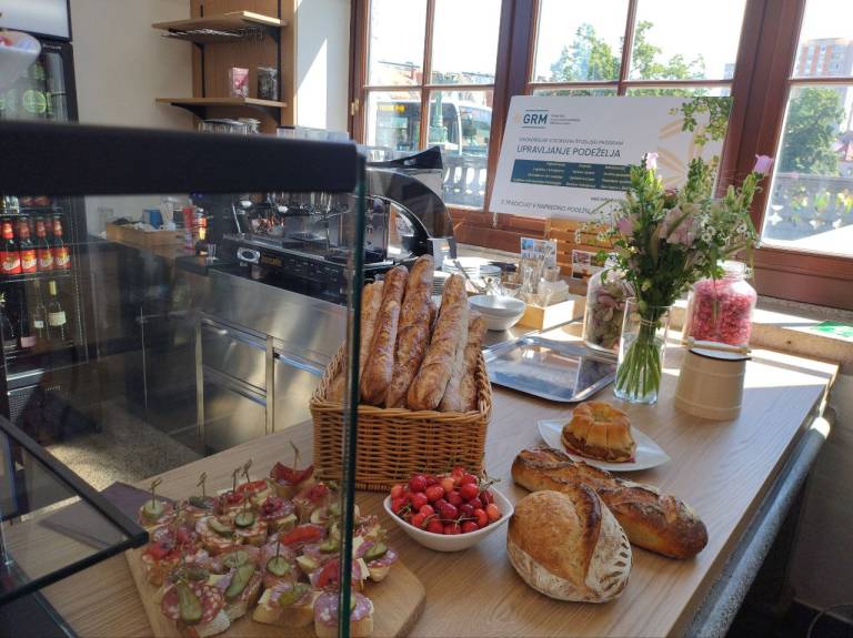 Na policah je bil dišeč kruh z drožmi ter potičke, saj so v sodelovanju s Slaščičarno in pekarno Klemen iz Trzina. Kot nam je povedal slednji, bodo kruh in ostali izdelki na voljo od ponedeljka.