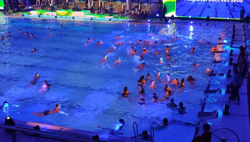 Vrhunec dogodka pa je bil zaključni skok v bazen, v katerem so se združile različne generacije ljubljanskih profesionalnih ali ljubiteljskih privržencev vodnih športov, kar je simbolično zaznamovalo odprtje novega Športnega centra Ilirija.