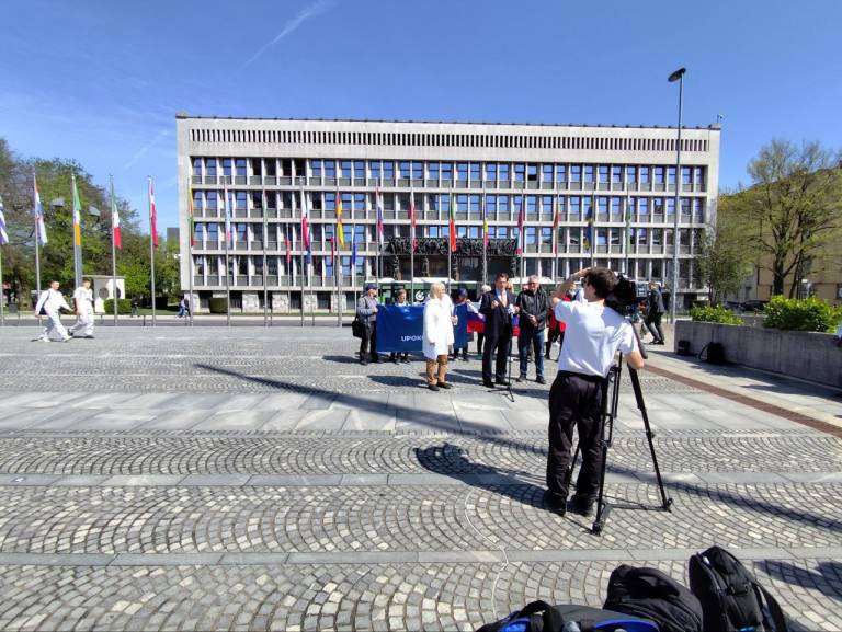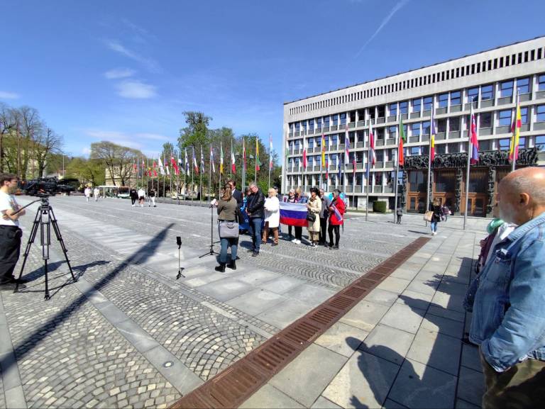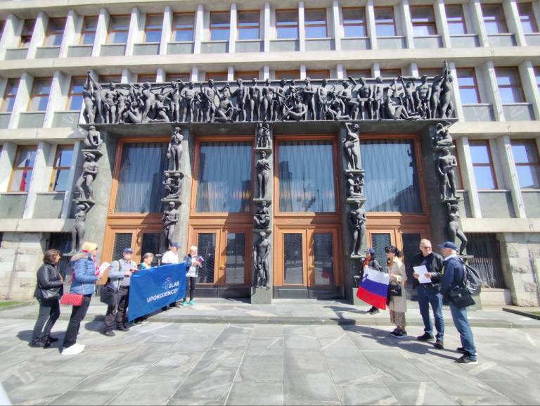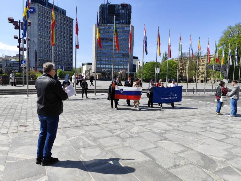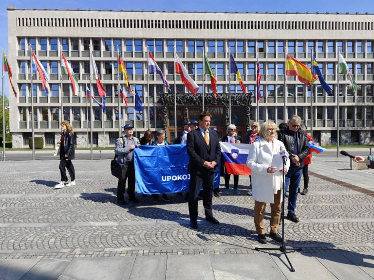 Malo pred poldnevom je na Trgu republike potekala tiskovna konferenca stranke Glas upokojencev in Inštituta 1. oktober.
