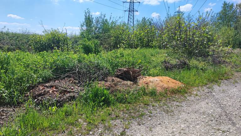 Večji kup smeti je tudi pred ograjo. Tega je odlagalec prekril z zemljo in rastlinjem, tako da ni povsem jasno, kaj je pod njim.