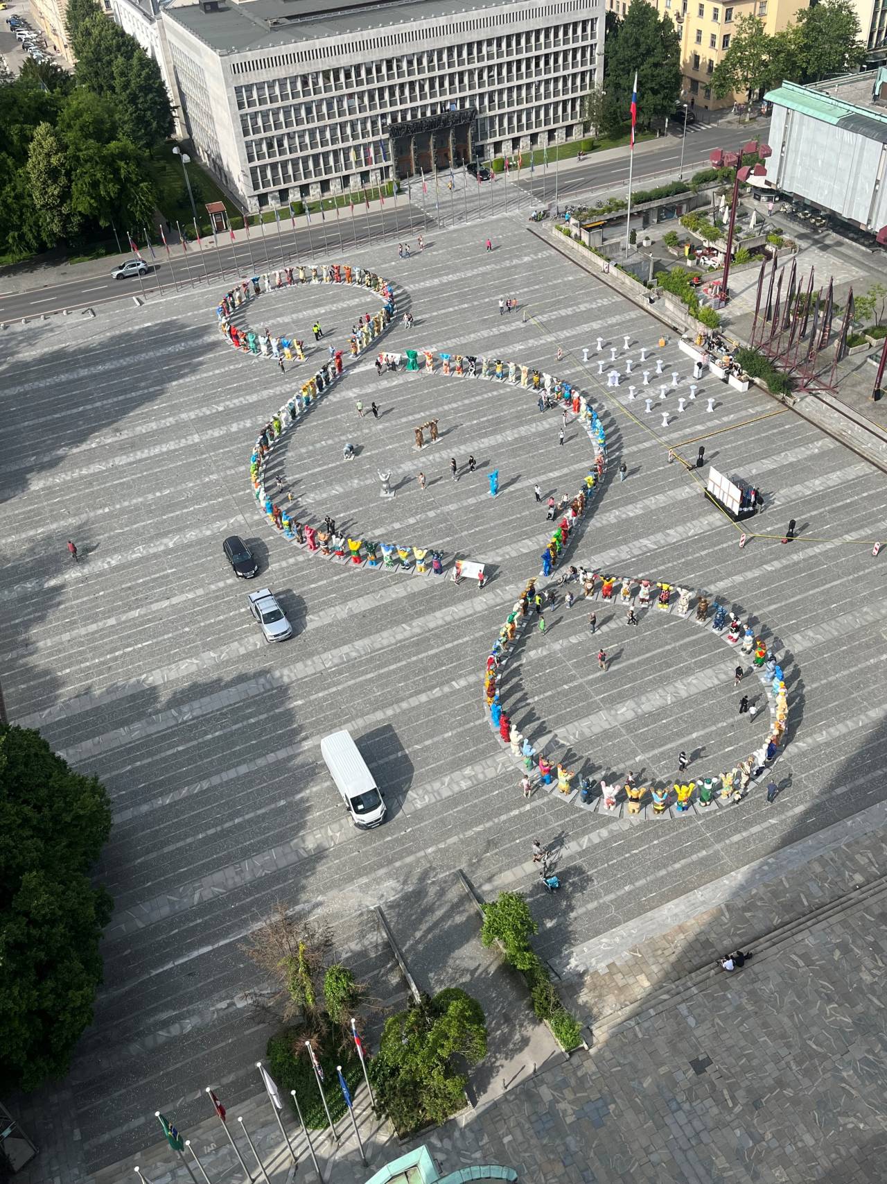 Na Trgu republike že od 29. maja 2024 ponosno z roko v roki stoji 145 dvometrskih državnih medvedov, ki simbolizirajo vizijo miroljubnega sveta prihodnosti.