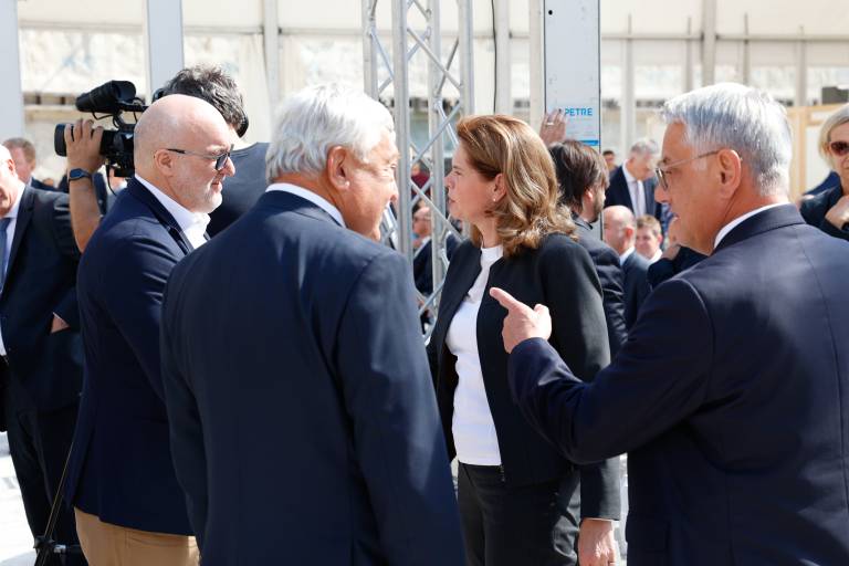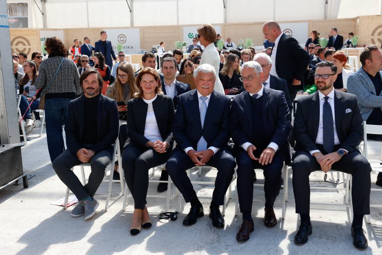 Nato so nastopili govorci, ki so sedeli v prvi vrsti: prvi mož OTP Bank Sandor Csanyi, prvi mož Strabaga, gospodarski minister Matjaž Han, infrastrukturna ministrica Alenka Bratušek ter ljubljanski podžupan Rok Žnidaršič.