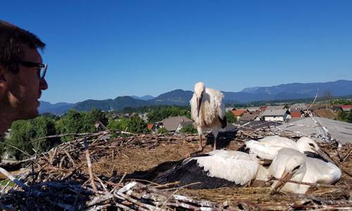 Letošnjo mrzlo pomlad se je par štorkelj odločil vzrediti novo leglo. Takrat so se odločili, da jih bodo pričeli bolj resno spremljati in proučevati. Do sedaj so štorklje lahko opazovali le z razdalje, v samo gnezdo pa niso uspeli videti.