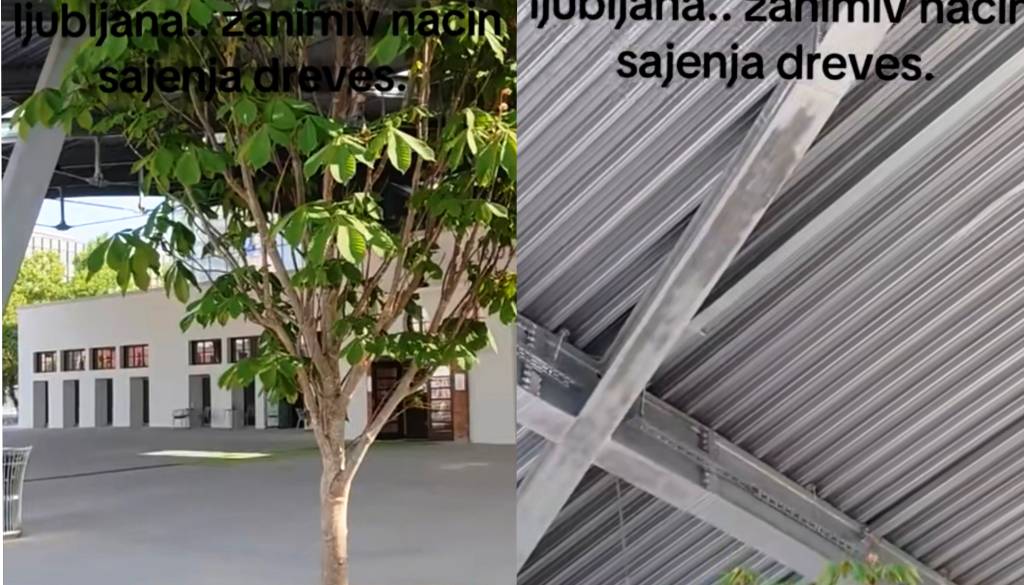 TikToker je objavil video mladega drevesa, zasajenega pred vhodom v kopališče, a s posebnim detajlom – nahaja se pod streho.