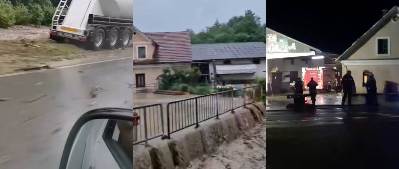 Neurje je ob 21.18 zajelo tudi občino Šmartno pri Litiji, kjer je hudourniška voda zalila nekaj stanovanjskih hiš, skladišč, nanesla pesek na cestišče ter sprožila manjši plaz za stanovanjsko hišo.