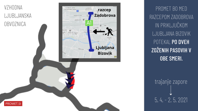 S pripravljalnimi deli za zaporo so že pričeli, vzpostavljena pa bo predvidoma do ponedeljka, 5. aprila. Zaradi postavljanja le-te je popolna zapora pred razcepom Zadobrova z ljubljanske severne proti vzhodni obvoznici, iz smeri Novih Jarš proti Bizoviku promet ni možen.