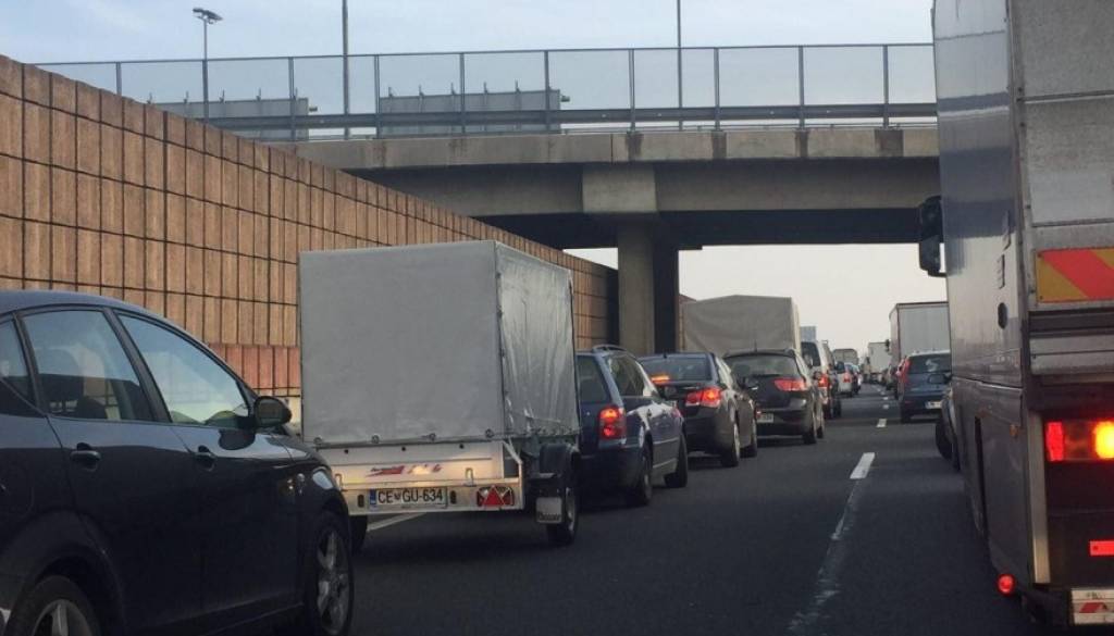 Na ljubljanski južni obvoznici je oviran promet, nastajajo dolge kolone.