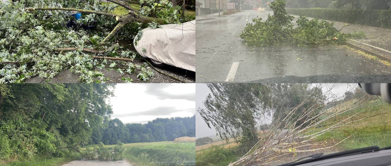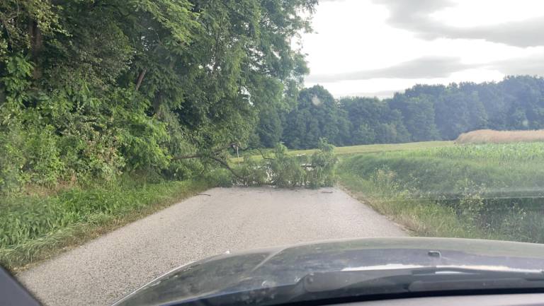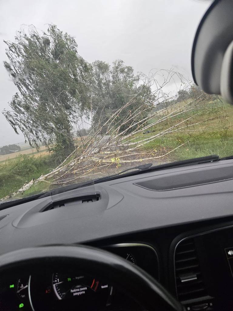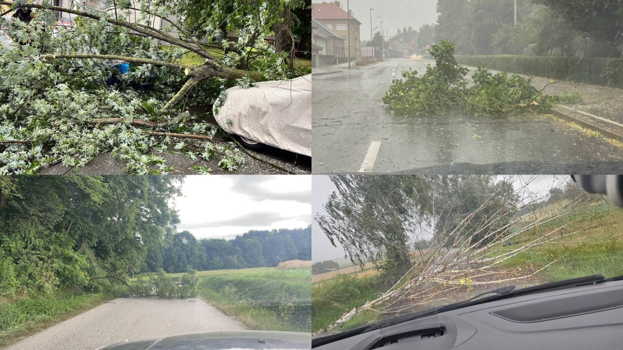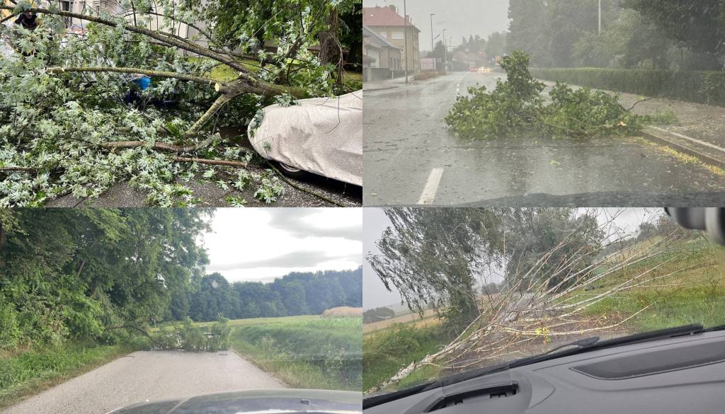 Vozniki opažajo podrta drevesa, odlomljene veje in večje količine meteorne vode, ki otežujejo razmere na cestah.
