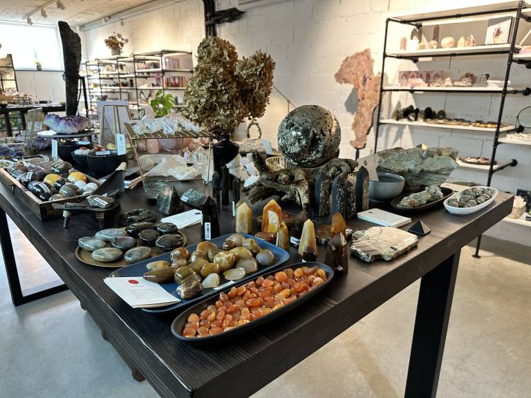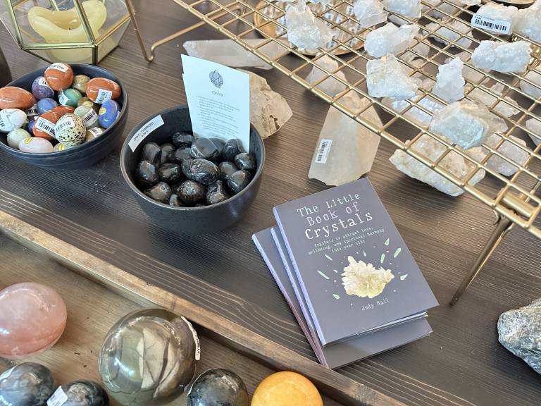 Že ob samem vstopu nas ovije omamen vonj opojnih kadil, ki prihaja iz pritličnih prostorov trgovine, v kateri najdemo vse od različnih vrste kadil, kristalov, nakita, figuric, orakeljskih in tarot kart, različnih knjig o kristalih ali jogi, darilnih paketov pa vse do izdelkov za razvajanje telesa.