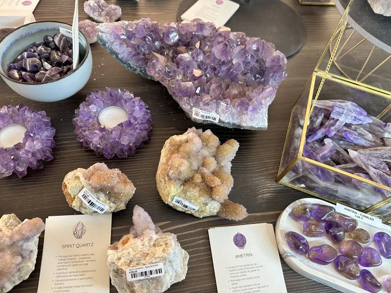 Jure: »Mislim, da se tudi velikokrat zgodi, da ko kdo pride v trgovino in mu svetujemo način nakupa - torej, da se malo razgleda in nato poišče tisto, kar ga najbolj pritegne, da večina ljudi vseeno prebere opise kristalov na listu ob njih in nato rečejo: 'Evo, točno to iščem' namesto, da bi se res prepustili intuiciji.«