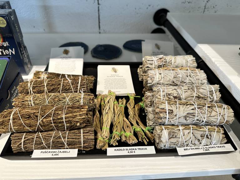 Mojca: »Pri kadilih je nekako tako kot pri kristalih. So kadila, ki se uporabljajo za različne namene. Tako kot imamo čaje, ki te poživijo, ali pa čaje, ki te pomirijo, na podoben princip delujejo tudi kadila. Lahko imaš kadilo iz mete, ki te bo pomirilo ali pa kadilo iz rožmarina, ki ti bo dalo energijo. Kadila se predvsem razlikujejo glede na želišča, ki jim dajejo energijo, lokaliteto, zakaj se uporabljajo - kot zaščita, energija, pomiritev.