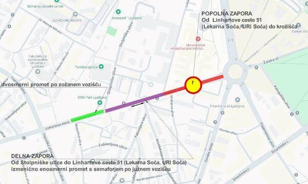 Od 6. pa do predvidoma 23. marca bo za ves promet zaprt odsek od URI Soča do krožišča Štajerske in Savske ceste ter Flajšmanove in Žalske ulice. Dostop do URI Soča bo mogoč iz smeri Topniške ulice.