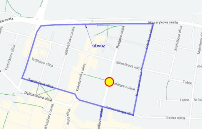 Zaradi obnove vročevoda bo od sobote, 19. avgusta, do predvidoma torka, 22. avgusta, za ves promet zaprta Resljeva cesta v križišču s Čufarjevo ulico.