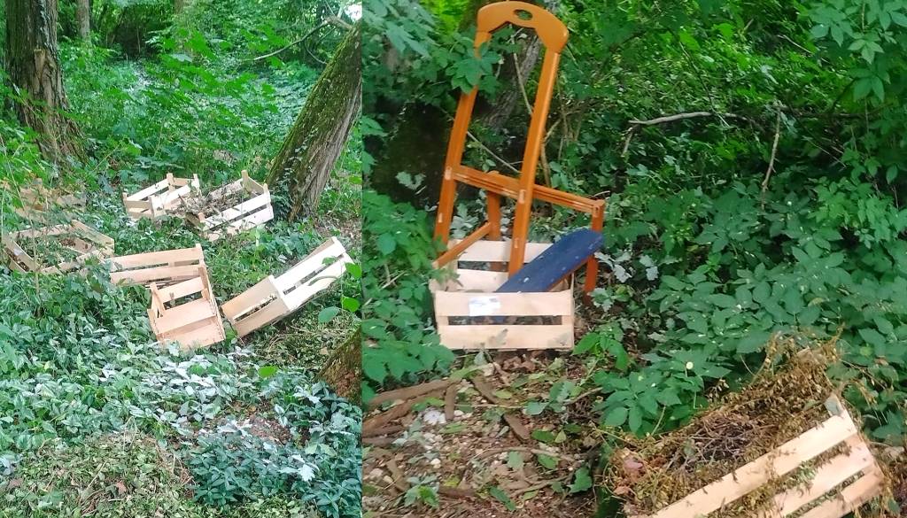 Poročajo, da je na tem območju spet pristal kup smeti. Tokrat gre za lesene zaboje z zelenim odrezom in nekaj pohištva.