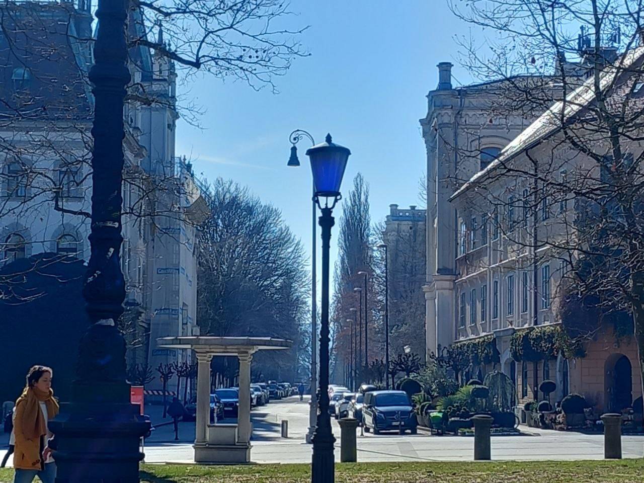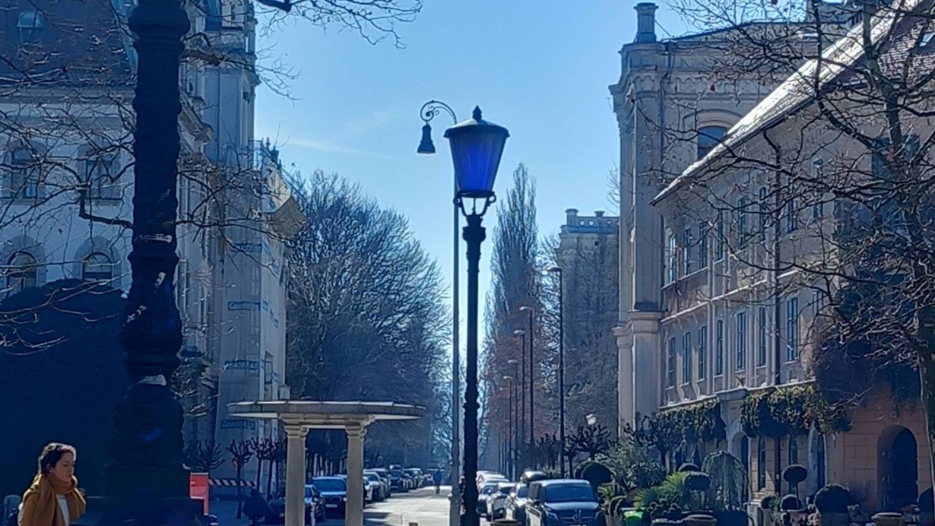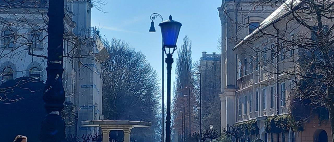 Med sprehajanjem po parku Zvezda na Kongresnem trgu smo opazili, da so ulične svetilke v parku obarvane modro.