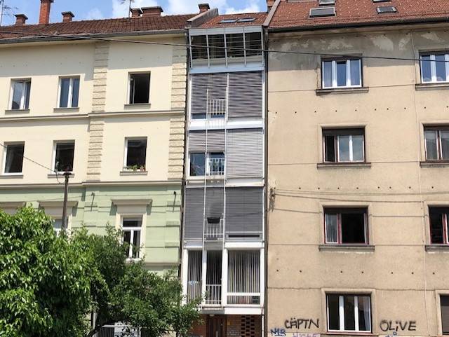 Kot študent se je naveličal iskanja sob po Ljubljani in tako je nastala ideja, kako racionalno zazidati neizkoriščeno špranjo med dvema stavbama na Slomškovi ulici 13 a, ki so jo uporabljali kot prehod na notranje dvorišče.