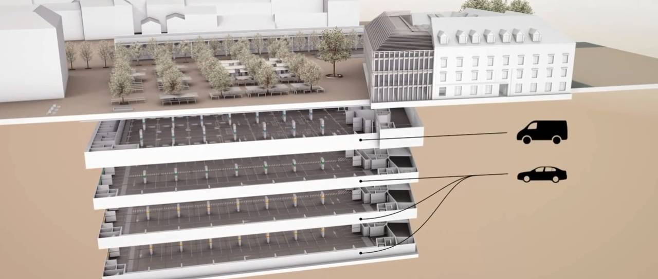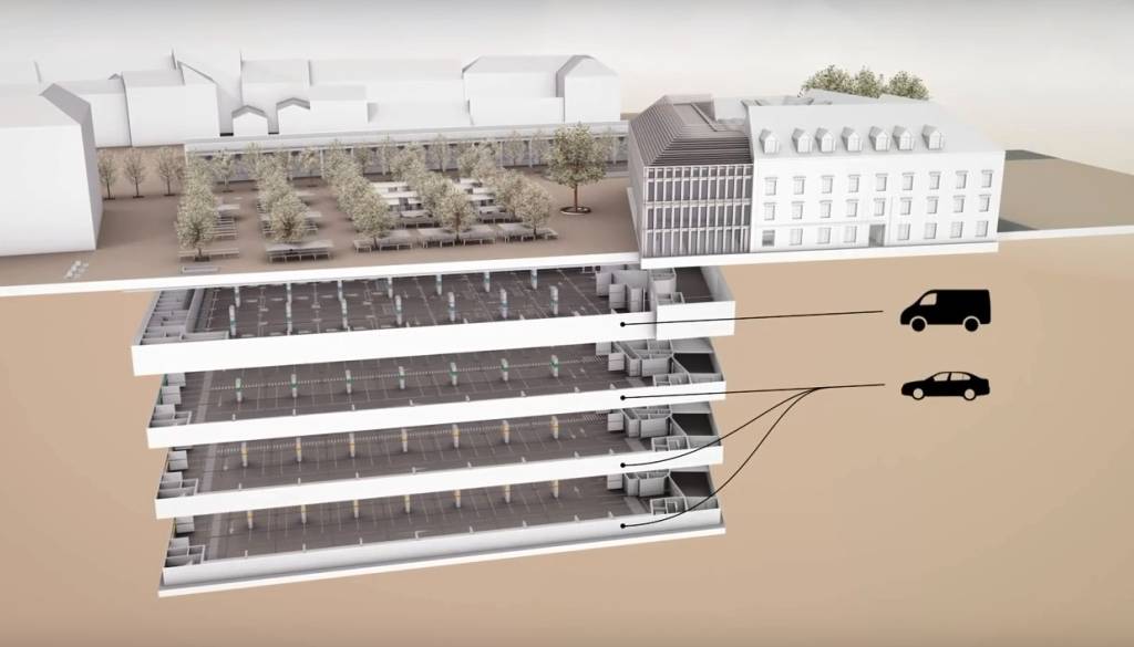 Zaradi zahtev zavoda za varstvo kulturne dediščine, da mora stati garažna hiša vsaj 16 metrov stran od stavbe semenišča ter da se mora izogniti vsem srednjeveškim ostalinam, se obseg parkirne hiše pospešeno manjša.