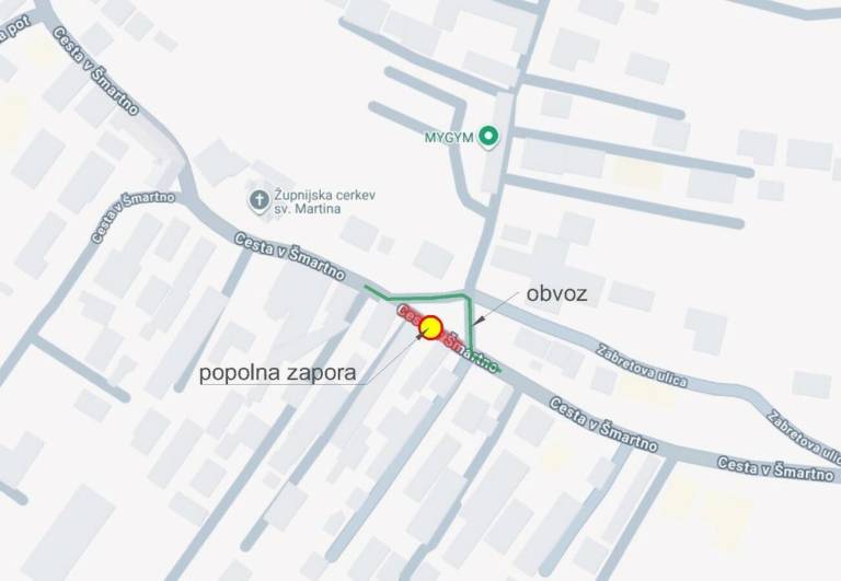 Od ponedeljka, 25. avgusta, do predvidoma nedelje, 31. avgusta, bo zaradi izgradnje elektro kabelske kanalizacije in jaškov zaprta Cesta v Šmartno pri hišni številki 19. Zapora bo veljala za ves promet.