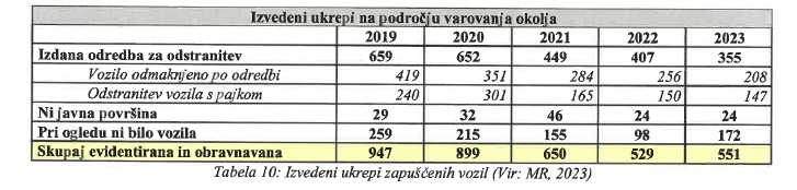 Na območju občine Ljubljana so v preteklem letu obravnavali 551 obravnav zapuščenih vozil, kar je 22 več kot leta 2022. Za primerjavo: leta 2019 so obravnavali 947 obravnav zapuščenih vozil.