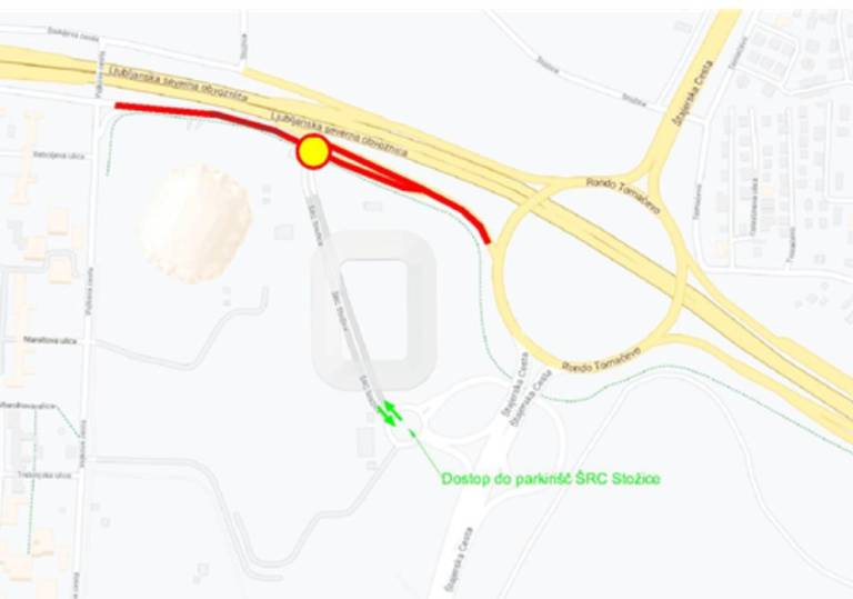 Zaradi te zapore bo dostop do parkirišč Športnega centra Stožice možen le preko Štajerske ceste.