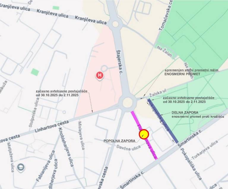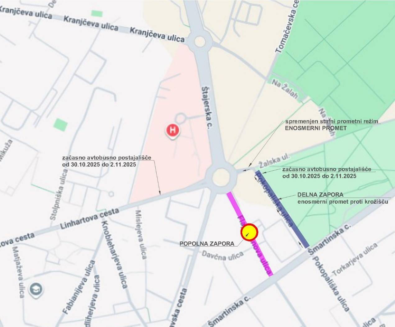 na Pokopališki ulici pa bo urejen enosmerni promet – od Šmartinske ceste proti krožišču Žale.