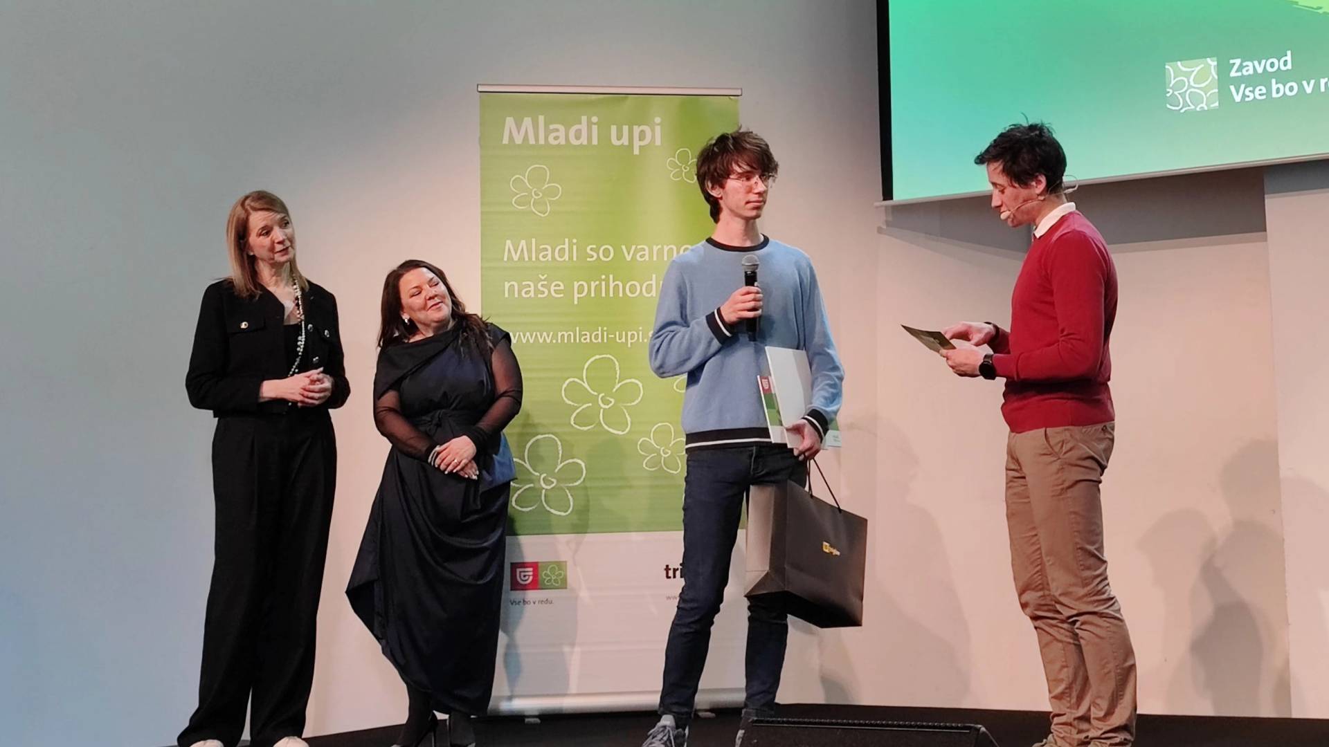 Vseh trinajst je stopilo na oder, kjer so jim predstavniki Zavarovalnice Triglav oziroma Zavoda Vse je v redu stisnili roko in jim zaželeli še veliko uspehov ter jim predali sredstva in druge ugodnosti.