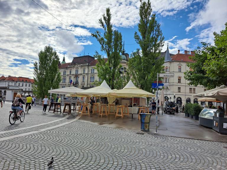 Dodali so še, da se stojnice obravnavajo kot dodatno površino obstoječega gostinskega obrata, torej kavarne Tromostovje, zato se z delovnim časom prilagajajo gostinskemu obratu, katerega delovni čas je vsak dan med osmo uro zjutraj in prvo uro zjutraj, še piše Delo.