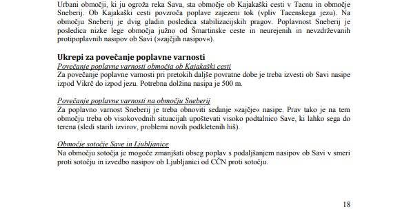 »Hkrati so predvideni še ukrepi na reki Savi pri sotočju z Ljubljanico in Kamniško Bistrico – sanacija drče, širitev in poglobitev struge ter ureditev brežine.«