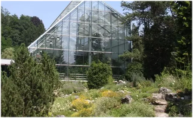 Veliki tropski rastlinjak, zgrajen ob 200-letnici Botaničnega vrta, obiskovalcem ponuja vpogled v rastlinski svet tropske džungle.