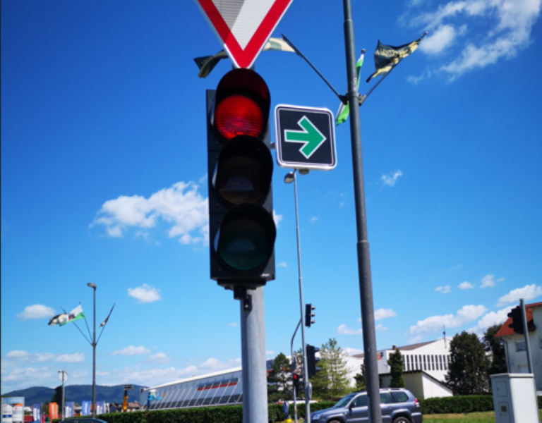 Zelena puščica omogoča bolj tekoč promet, saj lahko vozniki desno zavijejo tudi takrat, ko na semaforju sveti rdeča luč, če je smer prosta.