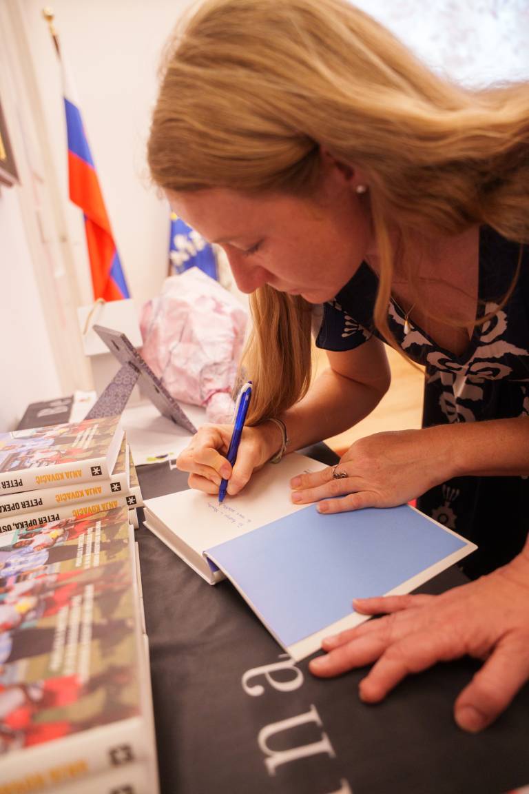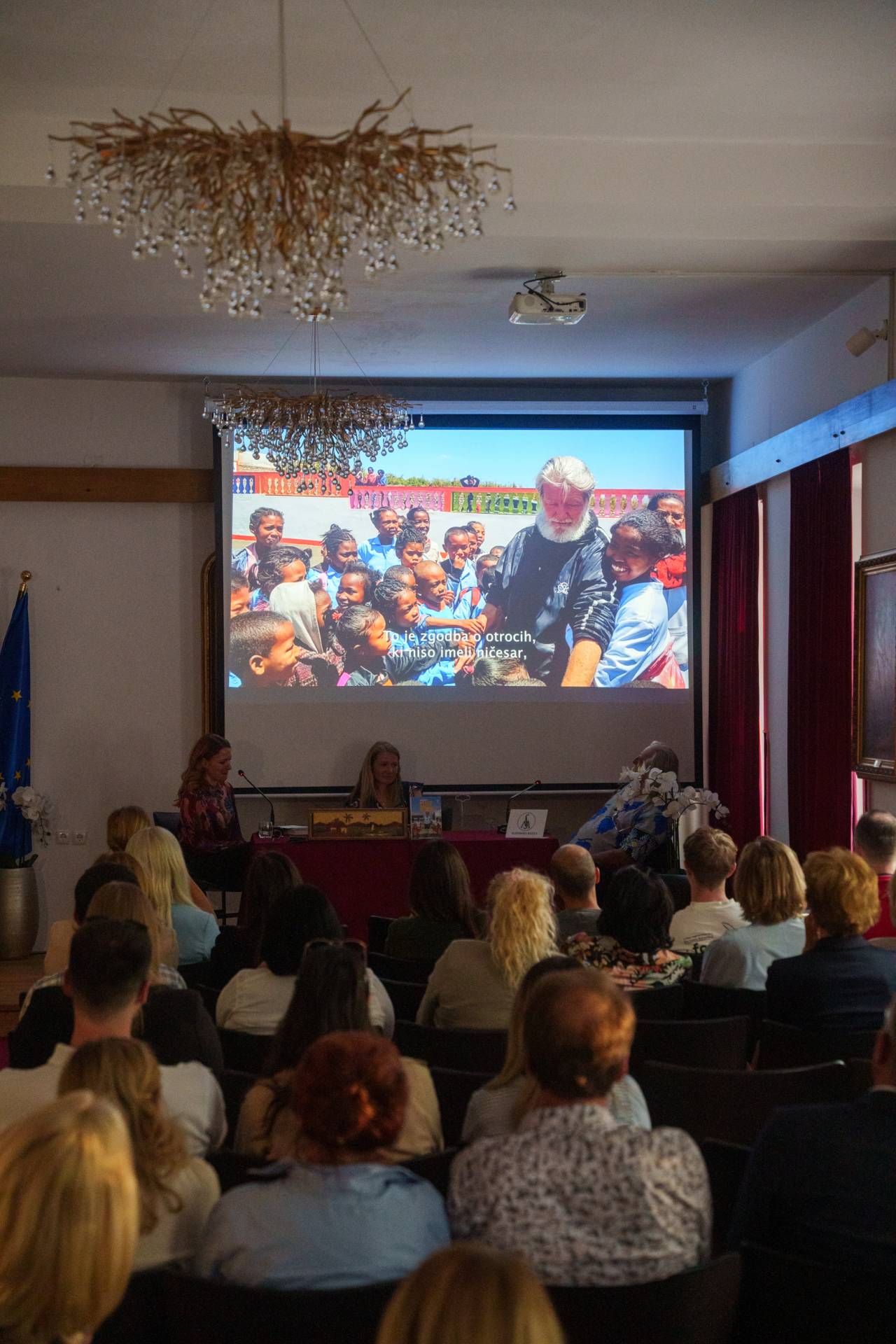 Predstavitev knjige Peter Opeka je vodila novinarka in pisateljica Anja Kovačič, avtorica knjige, ki je z Opeko preživela dvanajst dni v njegovi skupnosti Akamasoa – Mestu dobrih prijateljev.