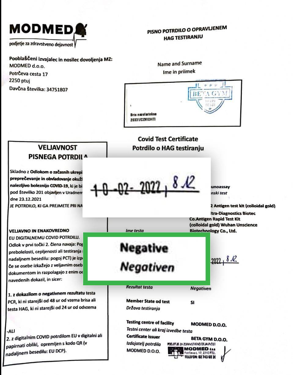 Ker sem se počutila vedno slabše, sem se odločila za še en hitri test, tokrat v kontejnerju preko ceste pri drugem nakupovalnem središču. Gospa je bris iz nosu vzela malo bolje kot pri BTC-ju, a je rezultat po 15 minutah bil ponovno negativen.