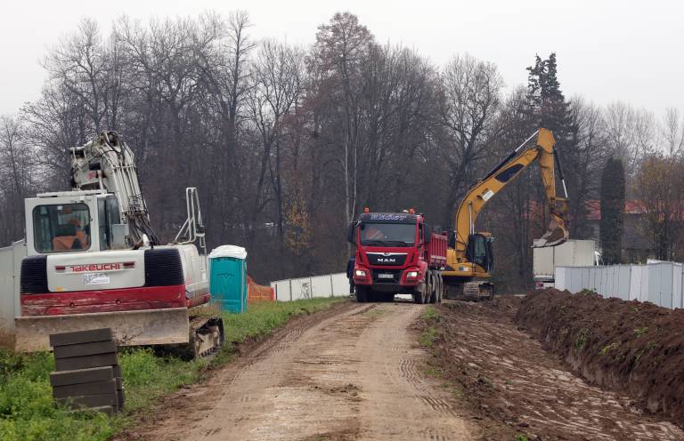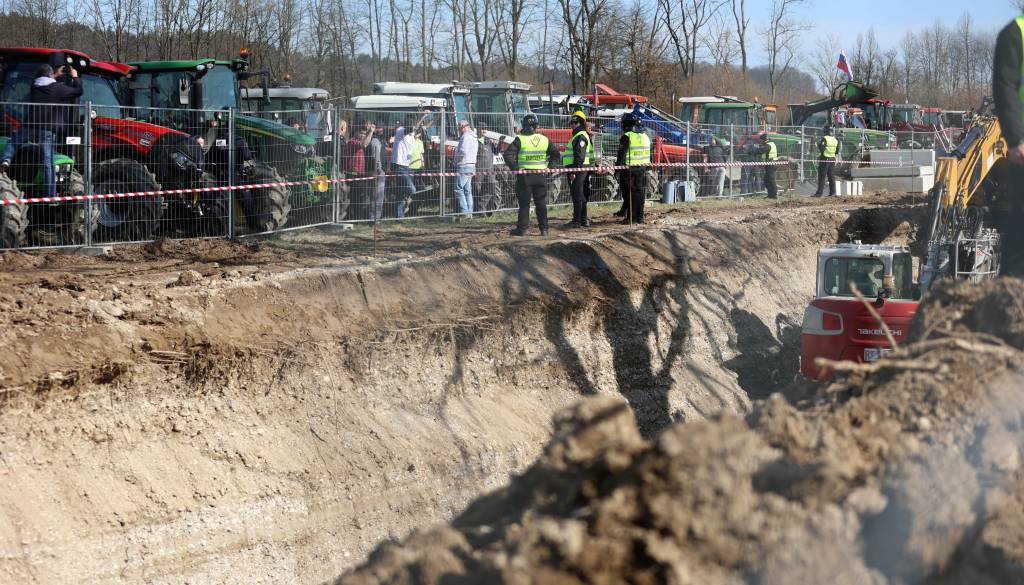 Vroča kri ob gradbišču kanalizacijskega kanala C0: Lastniki zemljišč s traktorji nad varovalno ograjo