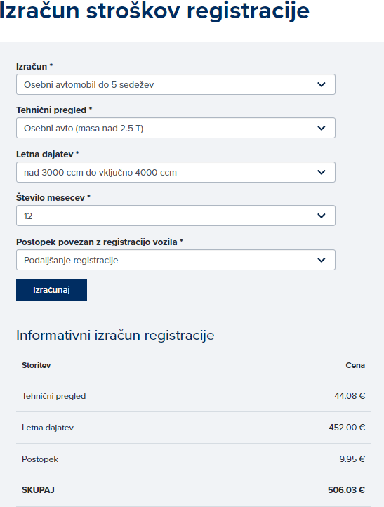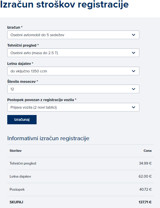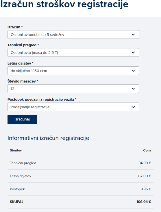 Ker točnega odgovora o tem, za koliko odstotkov so se podražile cene omenjenih storitev, nismo dobili, smo na njihovi strani kar sami izračunali, koliko stane registracija vozila.