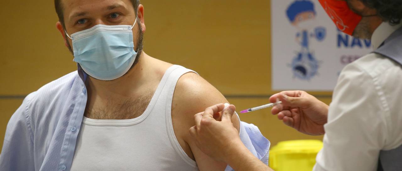 Minister za zdravje Janez Poklukar je danes zavihal rokav in dobil prvi odmerek cepiva AstraZeneca, z injekcijo pa je upravljal nihče drug kot prvi epidemiolog Mario Fafangel.