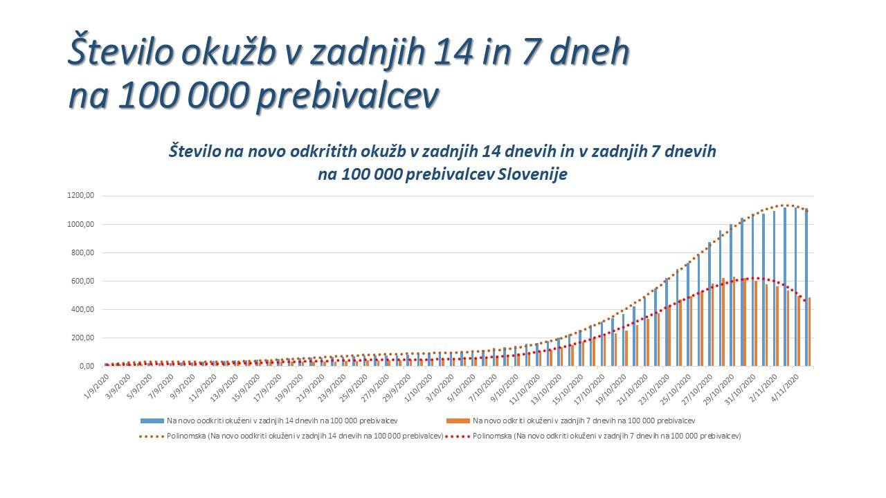Epidemiološki podatki kažejo, da so se ukrepi resnično sprejeli, da se izvajajo. Kot kažejo grafi, smo po besedah Kacina že dosegli vrh, in da se incidenca zmanjšuje. Sedemdnevna incidenca kaže, da smo že krepko čez vrh in da se incidenca zmanjšuje.