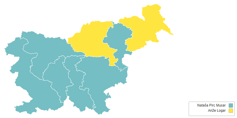 Zanimiv je tudi pogled na glasovanje v posameznih volilnih okrajih. Tako je v vseh mariborskih volilnih okrajih slavila Nataša Pirc Musar.