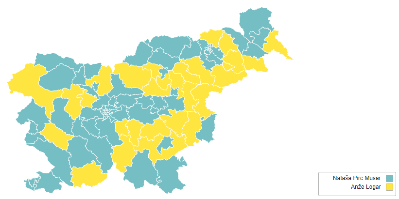 Nataša Pirc Musar je zmagala v šestih volilnih enotah, in sicer v volilni enoti Postojna, Kranj, Ljubljana Center, Ljubljana Bežigrad, Novo mesto in Maribor, medtem ko je njen protikandidat Logar večino volivcev prepričal v dveh, in sicer v volilni enoti Celje ter Ptuj, kamor spadajo tudi pomurski volilni okraji.