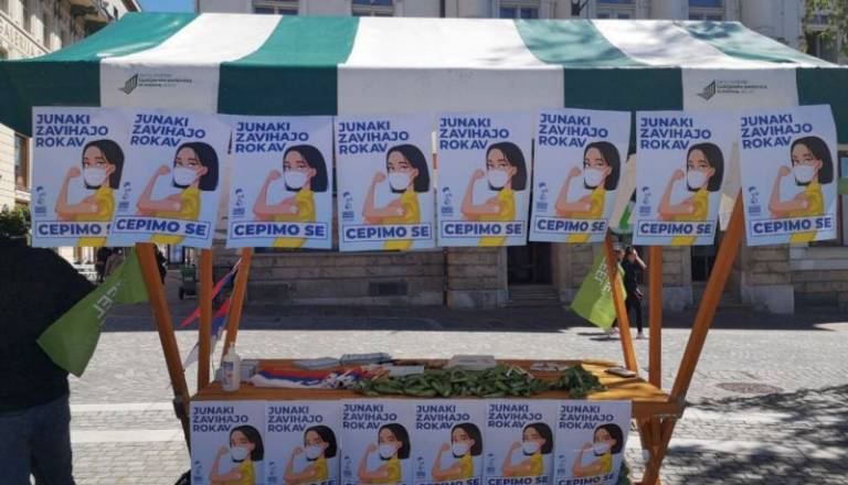Ob tem je še spomnila, da se danes začenja po vsej Sloveniji začenja organizacija stojnic v podporo cepljenju. Na Prešernovem trgu v Ljubljani so jo že postavili.