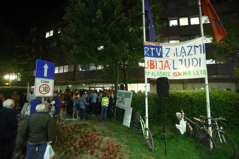Protestniki pred stavbo RTV tedensko protestirajo že od spomladi