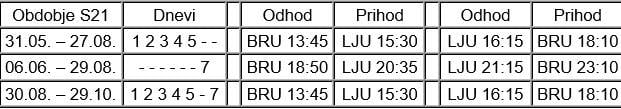 V poletnem voznem redu letenja (v obdobju 31. maj - 30. oktober 2021) Brussels Airlines načrtuje šest letov tedensko (dnevno, razen ob sobotah) z letali A320/A319.