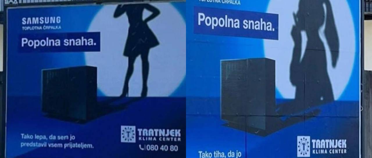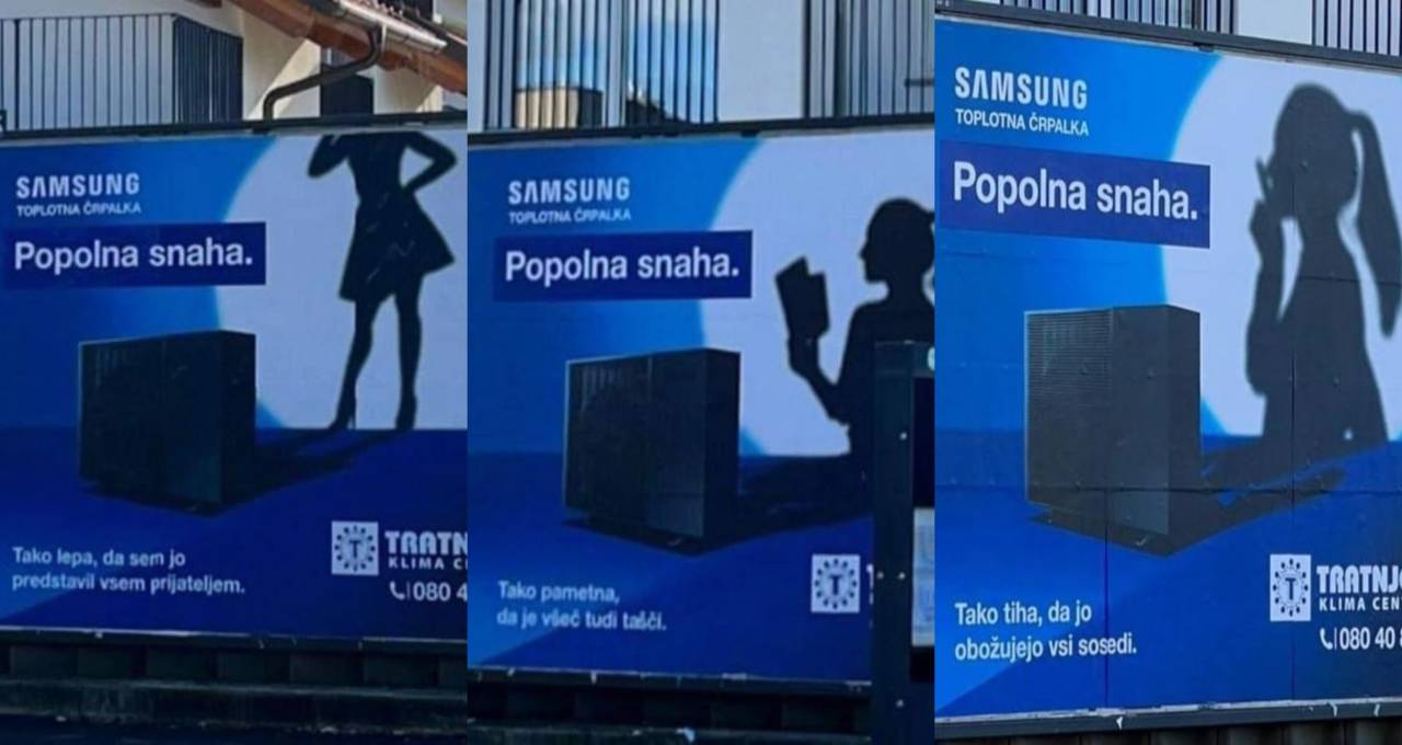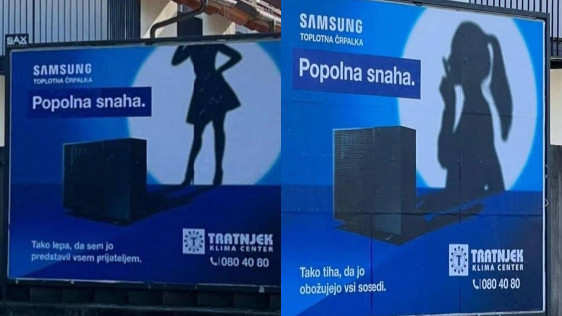 Po Sloveniji je v zadnjih dneh mogoče opaziti nenavadne obcestne plakate soboškega podjetja Klima center Tratnjek, ki oglašujejo Samsung toplotno črpalko.