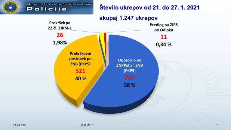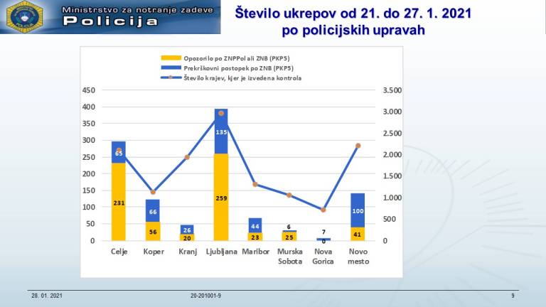 Največ ukrepov je bilo izdanih na območju policijske uprave Ljubljana 448 in Celje 322.