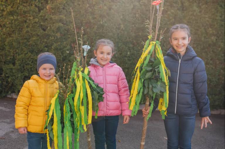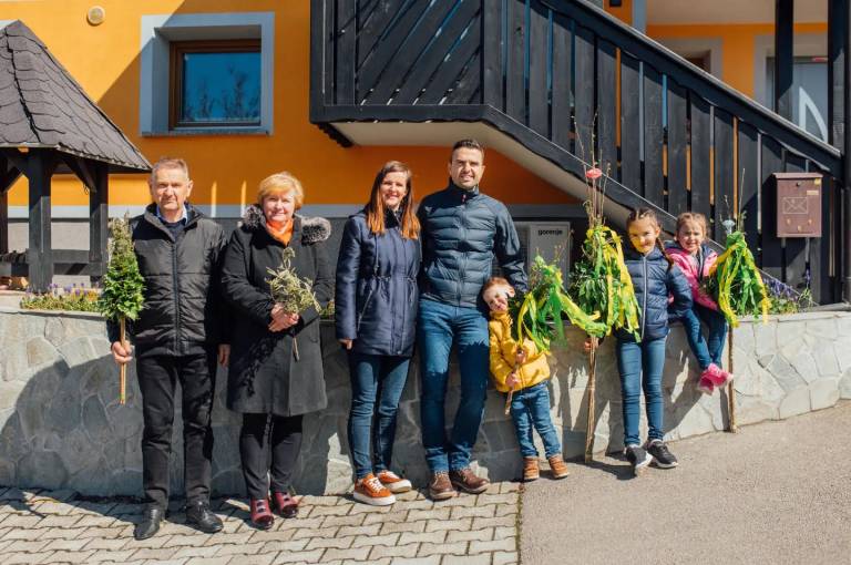 Otroci so navdušeni nad barvanjem pirhov, radi pomagajo v kuhinji mami Marjeti pri peki potice, skupaj pripravijo košaro za blagoslov in gredo k maši. Že teden prej, na cvetno nedeljo, so otroci butarice skupaj s starši in starimi starši nesli k blagoslovu.