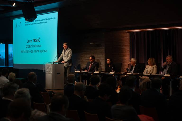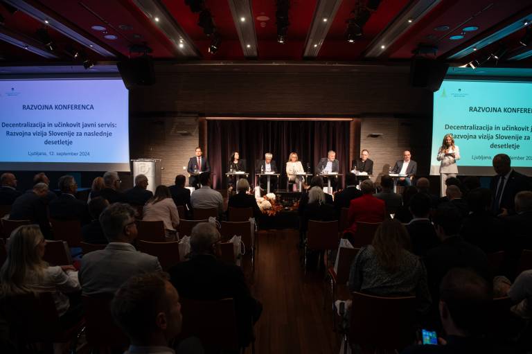 Razvojna konferenca z naslovom Decentralizacija in učinkovit javni servis: razvojna vizija Slovenije za naslednje desetletje se odvija v Klubu Cankarjevega doma v Ljubljani.