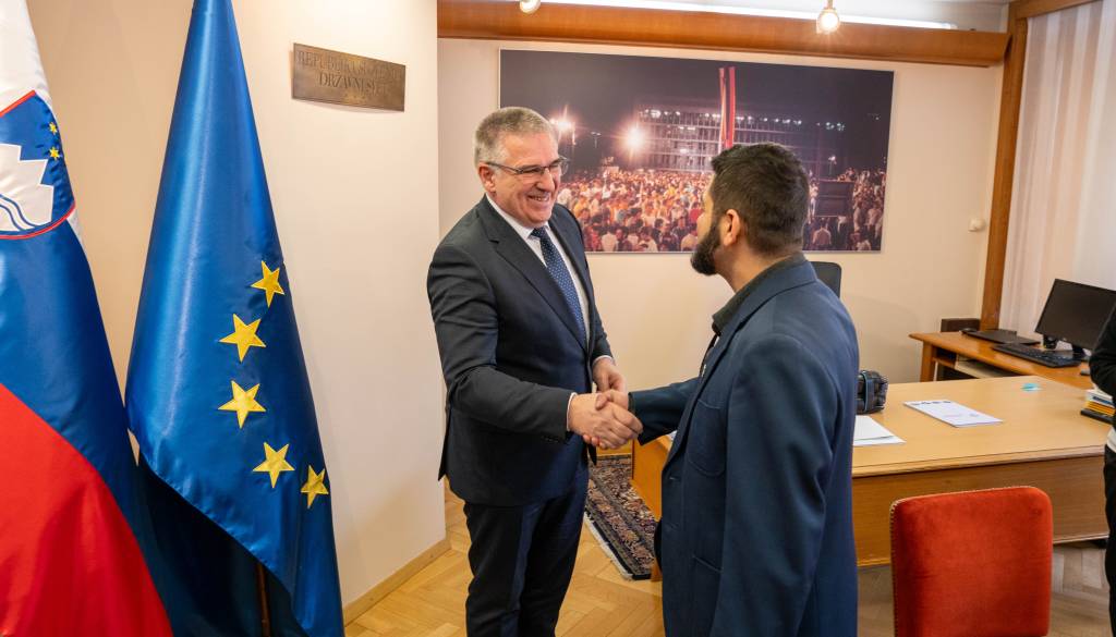 Predsednik Državnega sveta Republike Slovenije Marko Lotrič je v Ljubljani sprejel predstavnika romskega društva Sprememba takoj Murima Baftiara, ki vodi društvo, ustanovljeno decembra 2023 za pomoč romski mladini.