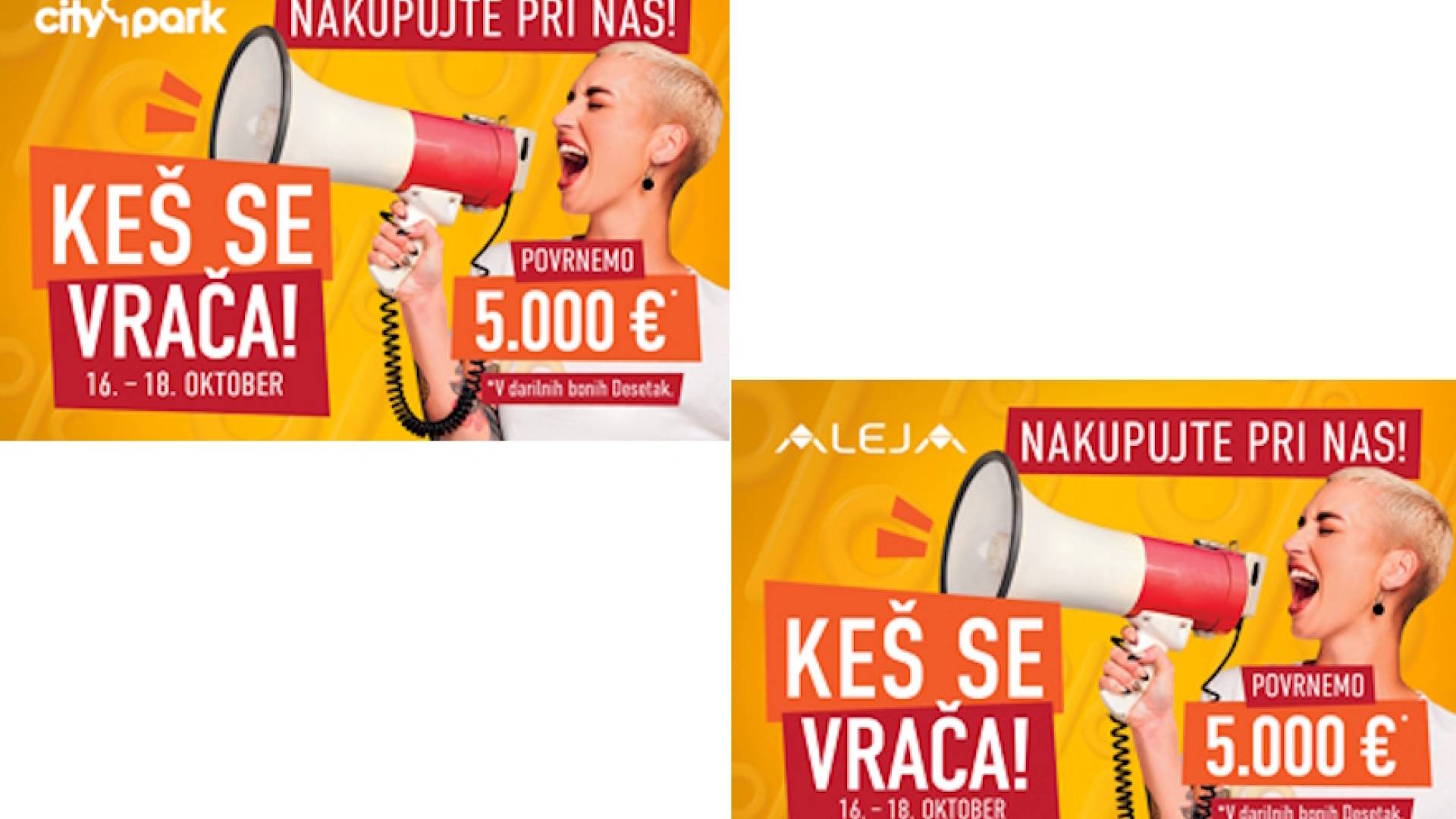 Od tega četrtka do te sobote bo v nakupovalnih destinacijah ALEJA in Citypark potekala velika nagradna igra »Keš se vrača«.