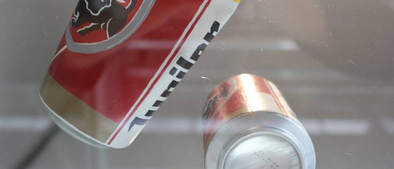 Meja med umetnostjo in smetmi se včasih zdi tanka. Serviser dvigal je našel dve očitno zavrženi pločevinki piva na vrhu jaška dvigala in ju dal v vrečo za smeti.