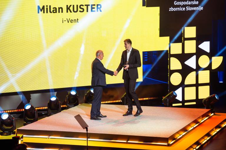 Milan Kuster, direktor podjetja i-Vent, prejel prestižno nagrado Gospodarske zbornice Slovenije za izjemne gospodarske in podjetniške dosežke.